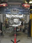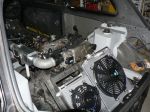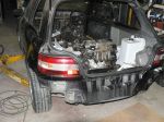 Here are some more pics of my project , the first one is the rear motor in place , the next is the start of the rear radiator install. then the before and after of the rear hatch with the vent in it. finally there is how I get the rear motor in and out and lastly the water pipes on the rear motor.